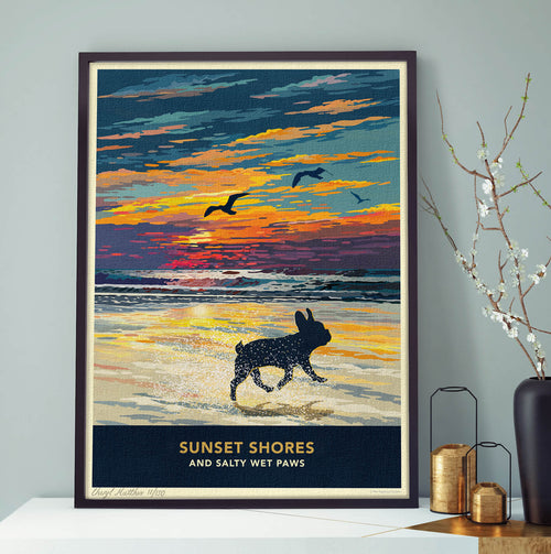 French Bulldog Sunset Beach Print - A Limited Edition Dog Lover’s Gift.