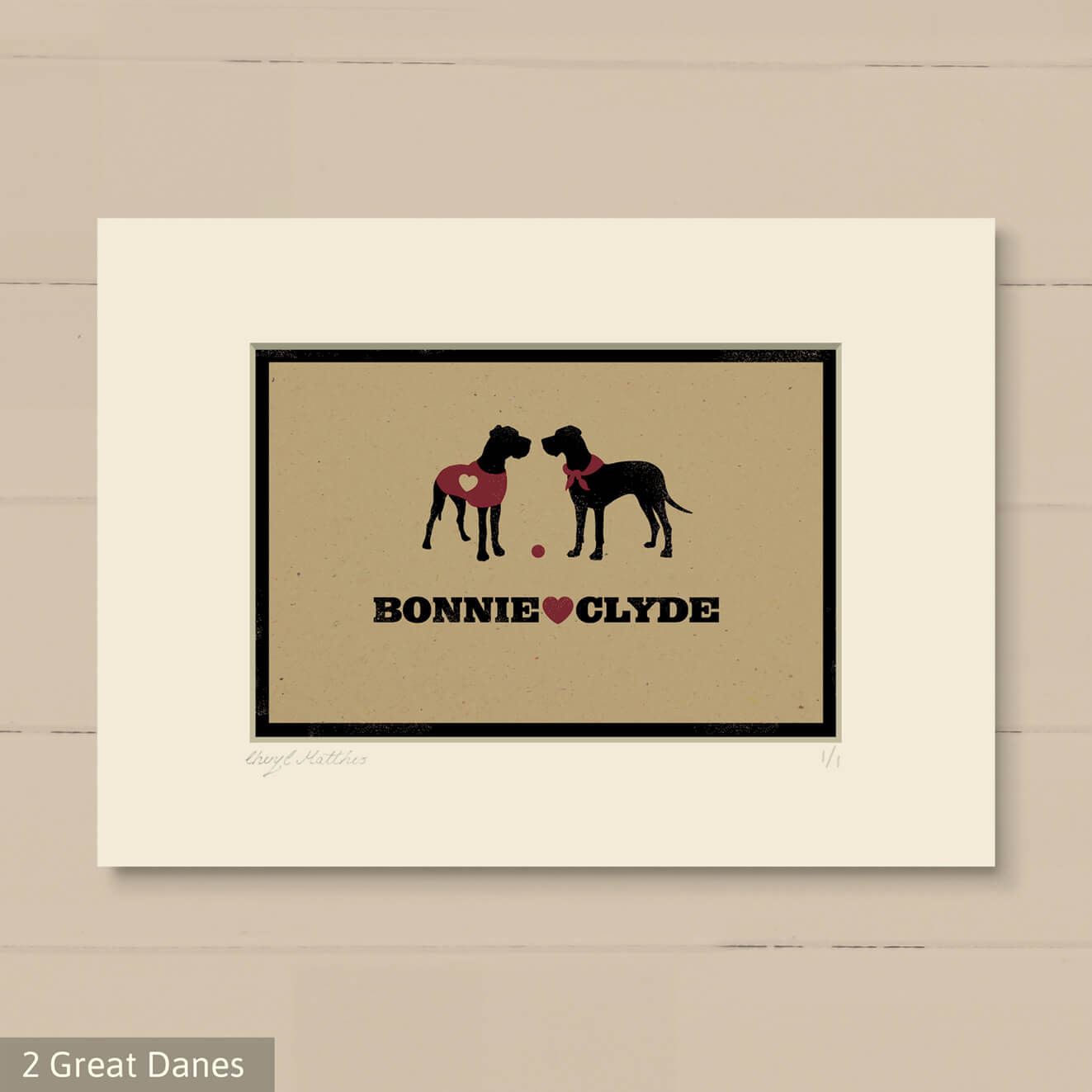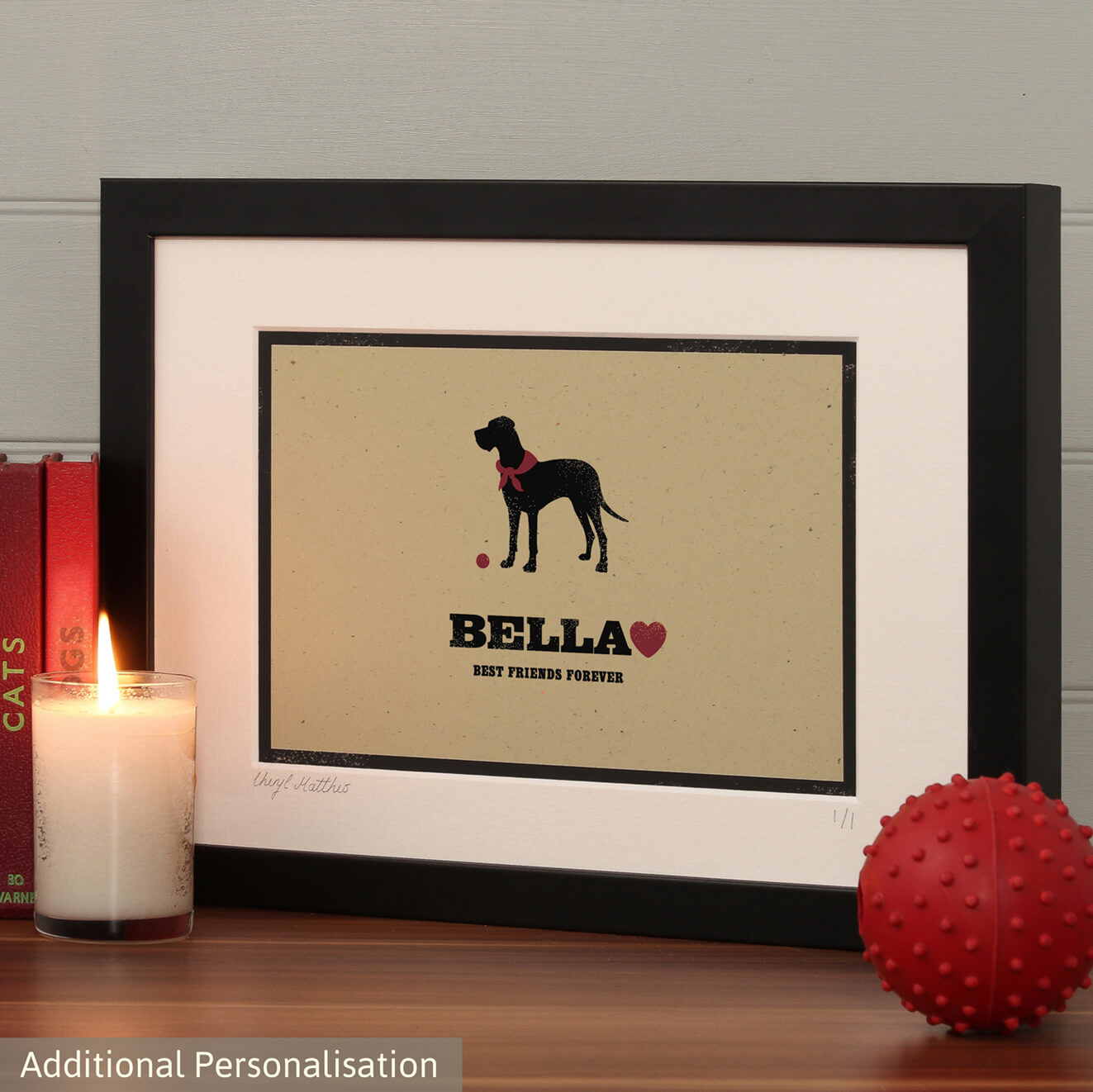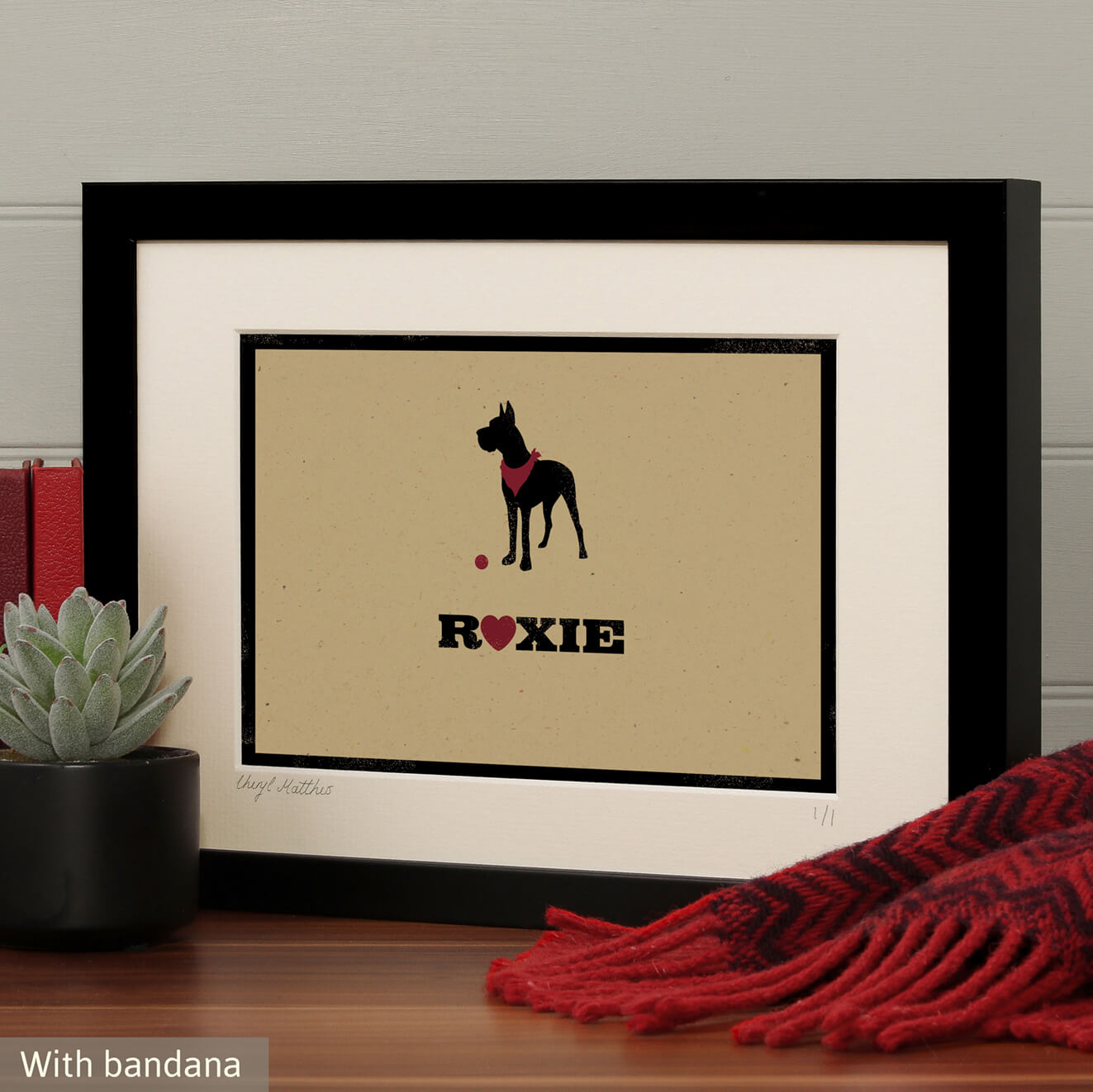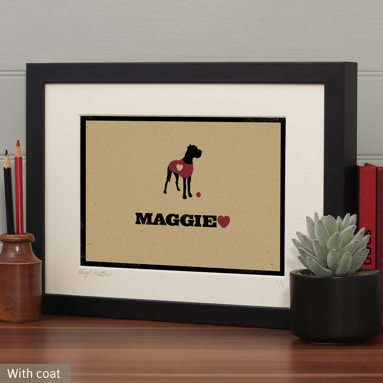 Celebrate this gentle and loving dog breed with our personalised Great Dane silhouette. This unique dog breed print is the perfect gift for dog lovers with the Great Dane’s name beautifully crafted with a heart.
