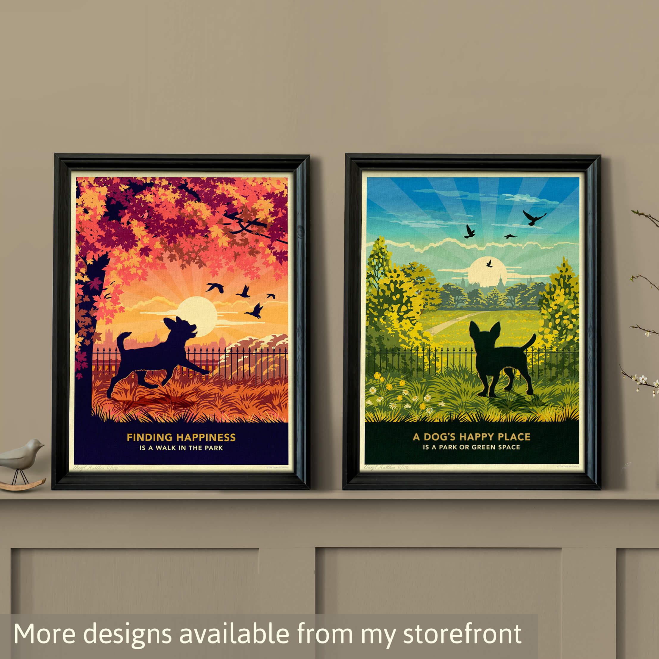 Revitalize your home with this beautiful Shorthaired Chihuahua print and celebrate walks along the shore with this fabulous dog breed. Illustrated in a bold, vintage style, this Chihuahua print reflects travel posters of the early twentieth century. Each print is signed and numbered as part of a limited edition.