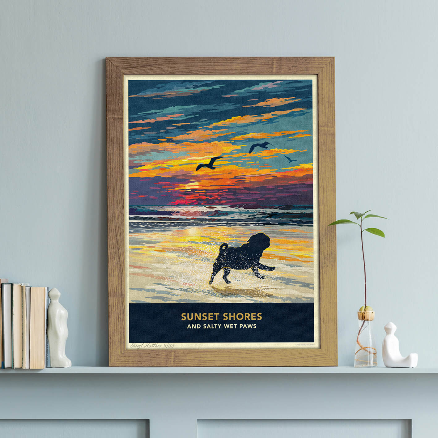 Pug Sunset Beach Print - A Limited Edition Dog Lover’s Gift.